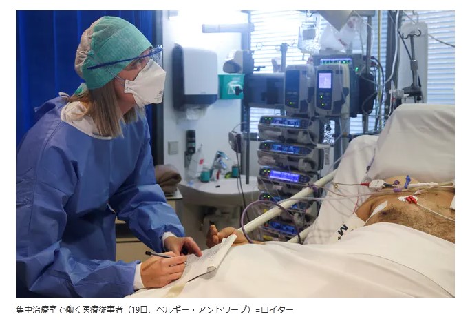 集中治療室で働く医療従事者(19日、ベルギー・アントワープ)=ロイター