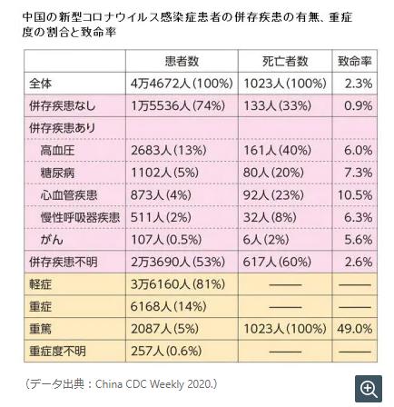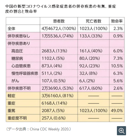 世界保健機関(WHO)と中国の合同調査チームが先月まとめた報告書によれば、感染した患者の7人に1人は呼吸困難になるなど重い合併症を起こし、6%が重症化する。軽度-中等度から重度への進行は「非常に急速に」起こり得ると、合同調査を共同で率いたWHOのブルース・エイルワード事務局長補は指摘した。』