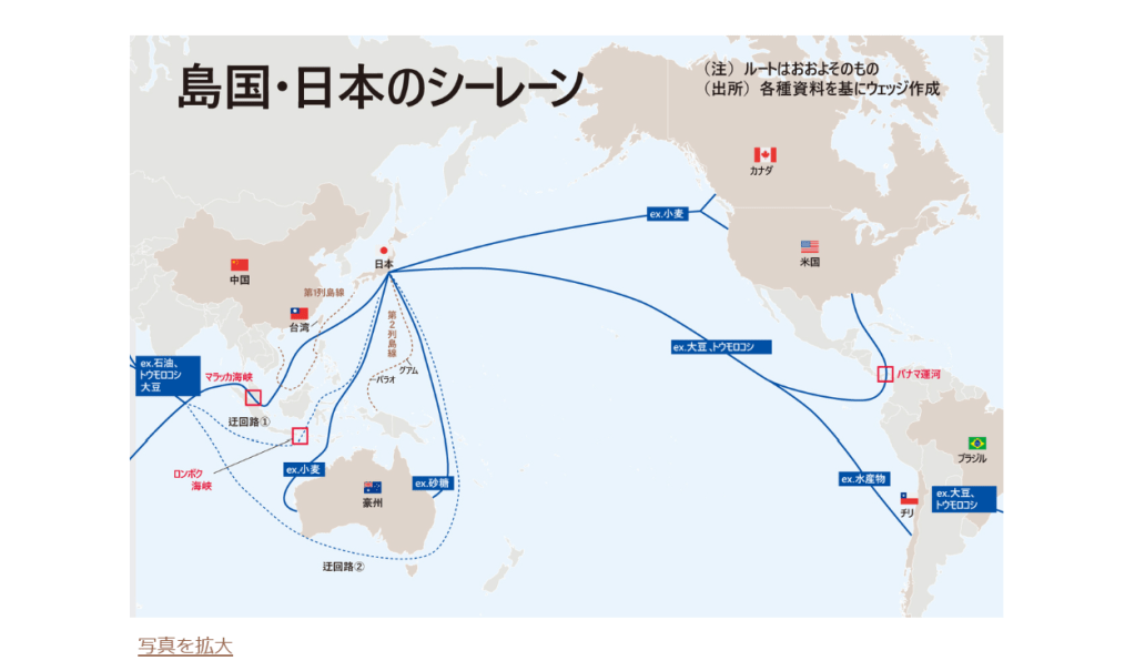 島国である日本は、国内総生産(GDP)で500兆円規模の経済を回すエネルギーとカロリーベースで62%の食料を輸入しており、そのほぼ全てを海運業界に依存している。そして、エネルギー安全保障と食料安全保障は、結局のところ、海上交通路(シーレーン)の安全問題に帰着する。