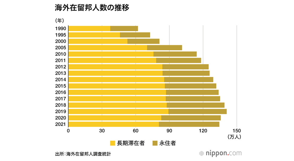 海外に住む日本人が2年連続減少:2021年は134万4900人―外務省調査