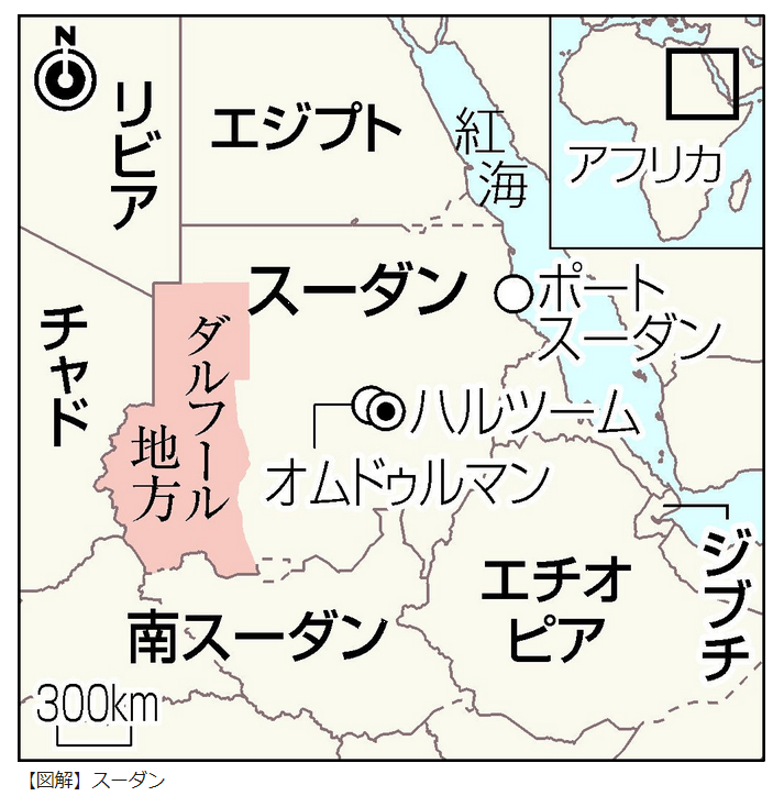 今回、政府軍と衝突している民兵組織「即応支援部隊(RSF)」は03年から続く西部ダルフールでの紛争で、黒人住民を虐殺したアラブ系民兵組織が前身。
