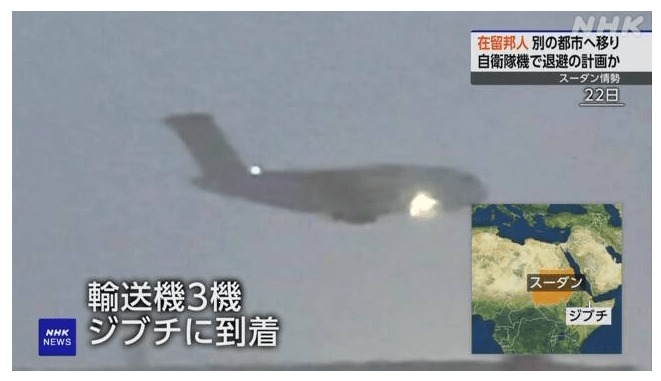 戦闘が激化しているアフリカ北東部スーダンの在留邦人を退避させるため、自衛隊機1機が21日、周辺国のジブチに向けて航空自衛隊小牧基地(愛知県)を出発した。ジブチに到着後、スーダンの情勢を見極めて現地入りのタイミングなどを判断する。