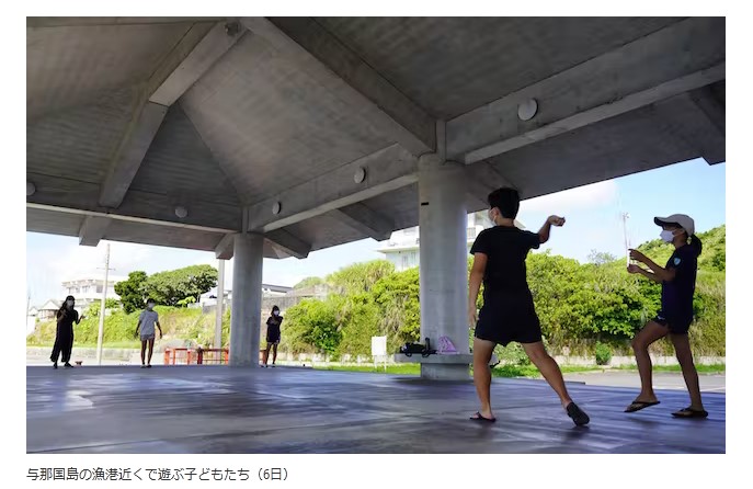 与那国島の漁港近くで遊ぶ子どもたち(6日)