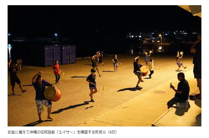 6日午後9時ごろには若い人達が来週のお盆に備え、太鼓を叩きながら踊る「エイサー」の練習をしていました。太鼓の「ドンッ、ドンッ」という勇壮な音と「スリサーサー!」という元気な掛け声が目の前の漁港に響いていました。数十キロ先とみられる北西の空には、通常の民間機とは異なる軌道で巡回する飛行物の光が確認でき、参加者の1人は「どこの機体か分からないが中国の軍事演習に関連した何らかの飛行だろう」と眺めていました。