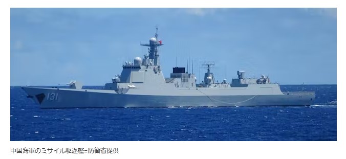 中国軍ミサイル駆逐艦、尖閣諸島周辺を航行 防衛省発表
