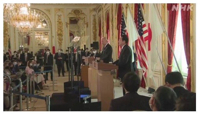 『日米首脳会談を終えた岸田総理大臣とアメリカのバイデン大統領による共同記者会見が東京 港区の迎賓館で行われ、午後3時前に終了しました。