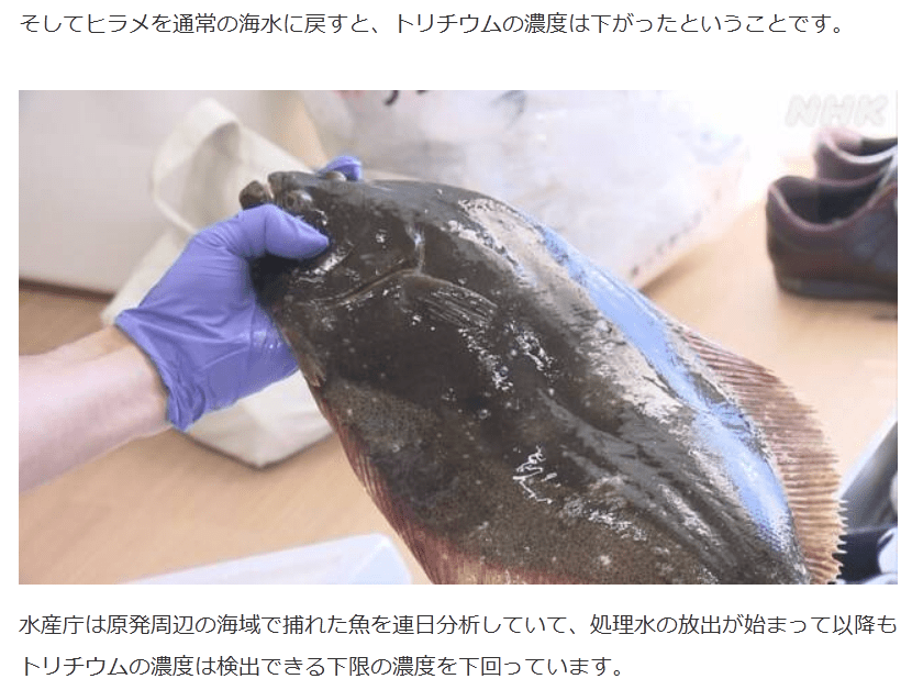 そしてヒラメを通常の海水に戻すと、トリチウムの濃度は下がったということです。