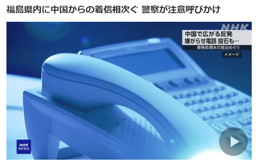 『福島原発の処理水海洋放出に対して中国が日本の水産物の全面的な一時禁止を宣言した。中国の国番号「86」から始まる嫌がらせの電話も鳴り響いている。日本にとっては迷惑この上ないことだ。