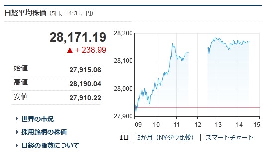 ※ ただ、値動きは『前日比149円47銭(0.53%)高』だから、ほぼ横ばいだ…。
