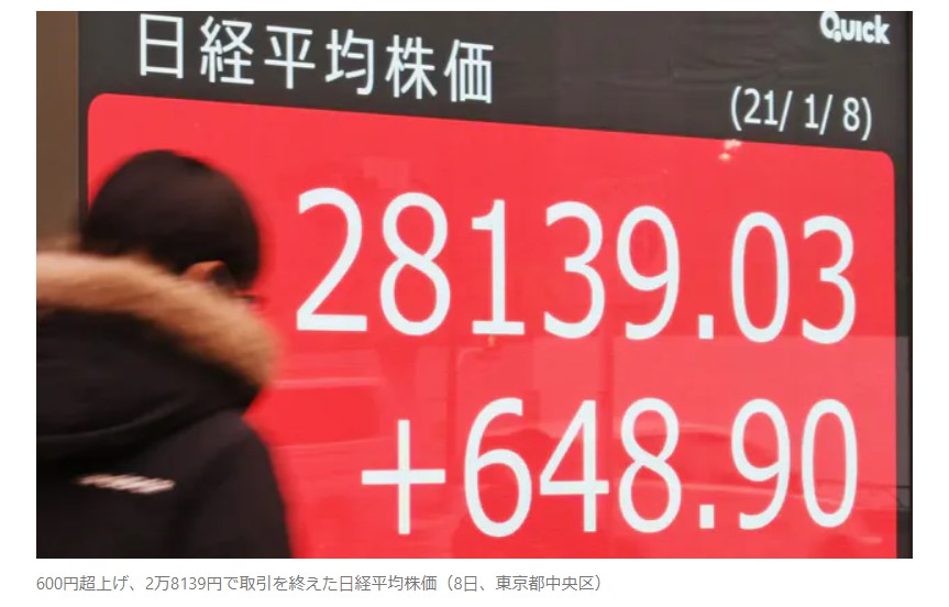 ・ダウ平均は終値で前週末比204㌦10㌣(0.67%)高の3万0403㌦97㌣となり、17日以来、およそ1週間ぶりに過去最高値を記録した。ナスダック総合株価指数とS&P500種株価指数も同日、そろって史上最高値を更新した。米政府の追加経済対策成立などが好感された。クリスマス休暇で機関投資家の取引参加が減るなか、個人投資家による活発な売買が株高を支えている。