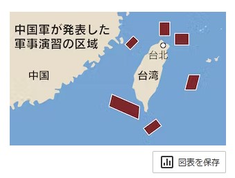 中国国営中央テレビ(CCTV)は軍の専門家の話として、台湾上空をミサイルが通過したのは初めてと指摘した。国防部によると、3日に続き4日も中国軍機22機が台湾海峡の事実上の停戦ライン「中間線」を越えて台湾側に入った。