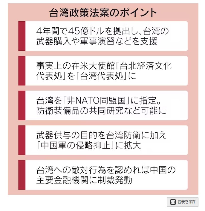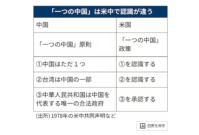 中国がこの原則に違反した場合、米国は台湾関係法に基づき、台湾の防衛に協力する。