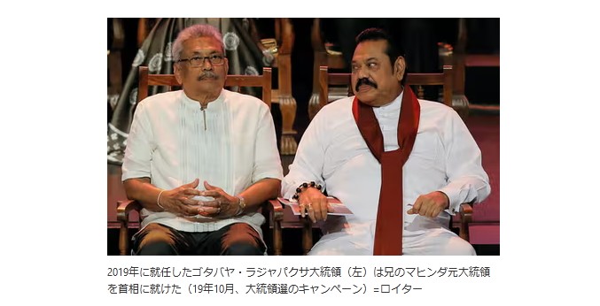 憲法改正で3選が禁じられたため、同年の大統領選はゴタバヤ氏が出馬して勝ち、マヒンダ氏を首相に迎えた。財務相や灌漑(かんがい)相、青年・スポーツ相なども一族に割り当て、縁故政治に拍車がかかった。