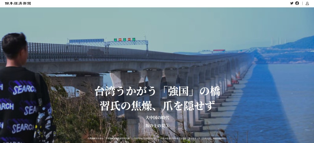 台湾うかがう「強国」の橋 習氏の焦燥、爪を隠せず 大中国の時代 坂の上の罠①https://www.nikkei.com/telling/DGXZTS00000600Z01C21A2000000/