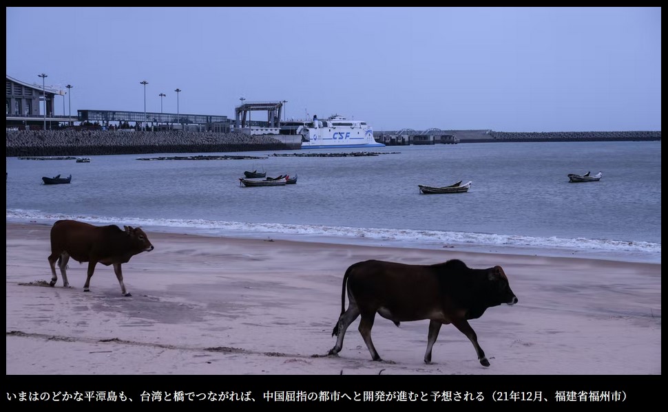 中国南部、福建省福州市。男性運転手の呉峰(57)はそう言って、海沿いにタクシーを止めると、巨大な橋を指さした。全長16キロメートル。橋は中国大陸から台湾海峡に浮かぶ小さな平潭(ピンタン)島に向かって、突き出るように架かる。2020年12月に完成したが、それで終わりではなかった。