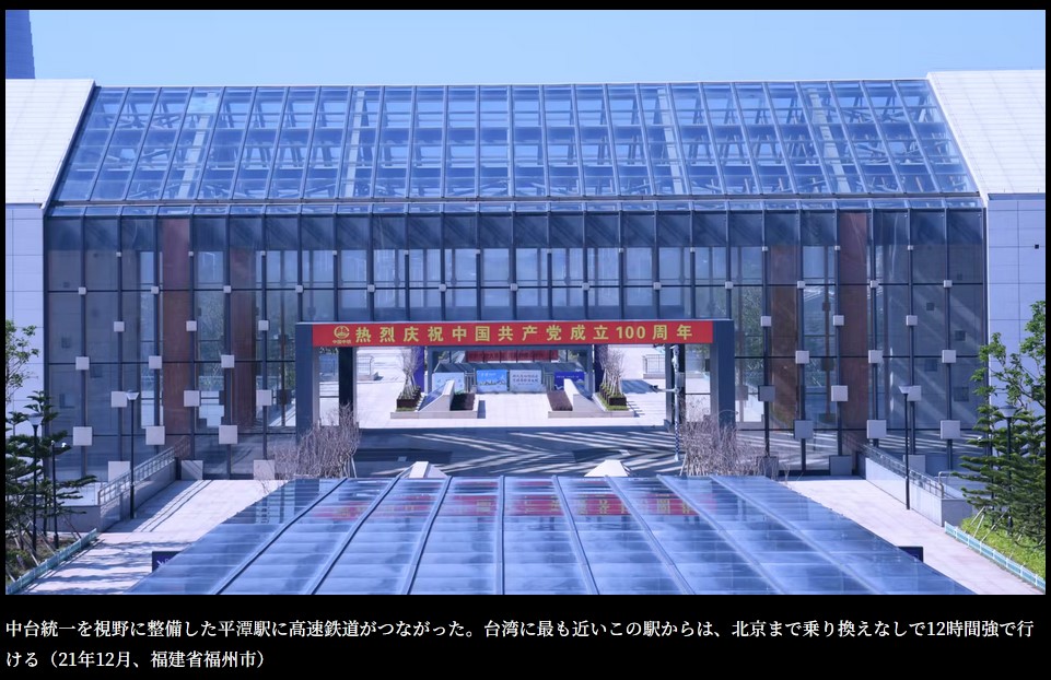 だが現実の「大中国」はもっとしたたかだ。 中台統一を視野に整備した平潭駅に高速鉄道がつながった。台湾に最も近いこの駅からは、北京まで乗り換えなしで12時間強で行ける(21年12月、福建省福州市)