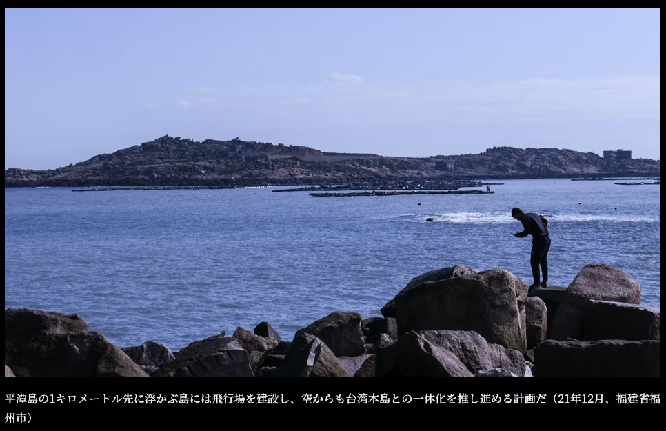 平潭島の1キロメートル先に浮かぶ島には飛行場を建設し、空からも台湾本島との一体化を推し進める計画だ(21年12月、福建省福州市)