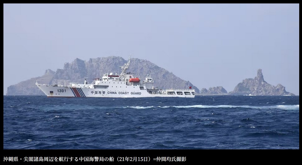沖縄県・尖閣諸島周辺を航行する中国海警局の船(21年2月15日)=仲間均氏撮影