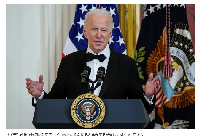 バイデン大統領が、すでに外交的ボイコットを検討していると発表していたのですが、今回の決定までかなり時間が経ちました。日本などの同盟国と調整をしていたのかもしれません。