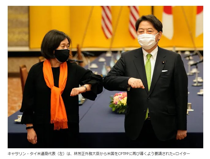 USTRのタイ代表は訪問中の東京で、日本の林芳正外相から直接、環太平洋経済連携協定(TPP)の新協定である「包括的及び先進的な環太平洋パートナーシップ協定」(CPTPP)への復帰に向け米国を導いてほしいと要請された。