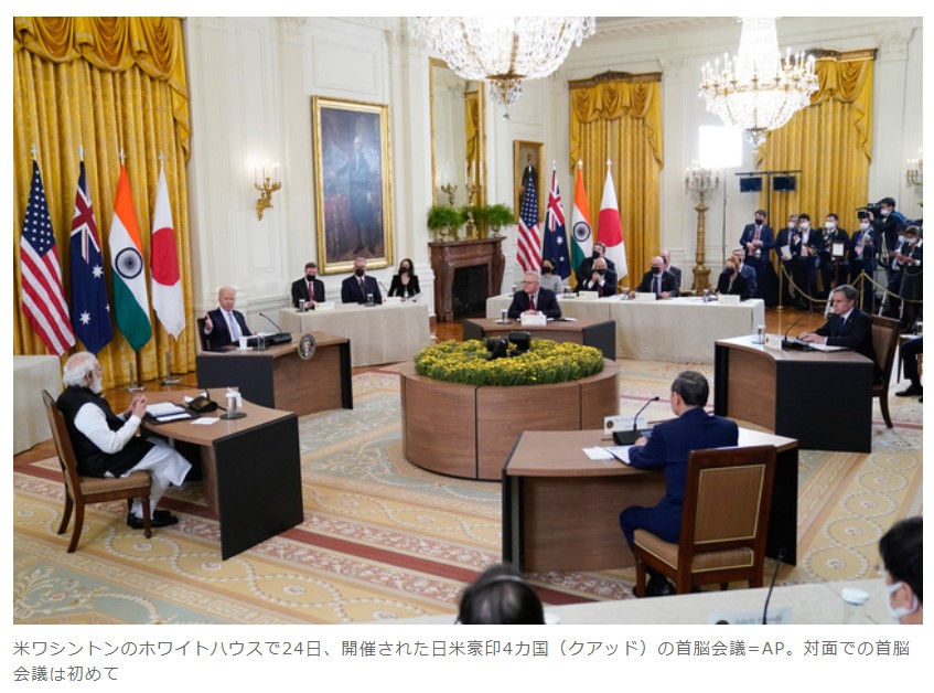 9月24日には日豪印との協力枠組み「Quad(クアッド)」の初の対面首脳会議も控えていた。アジアにとどまり、むしろ踏み込んで関与するとの姿勢を、その前に表明したかった事情が透ける。