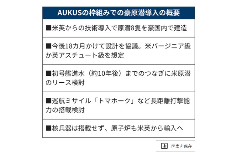 ※『日韓や北大西洋条約機構(NATO)メンバーなど30を優に超す同盟国の中で、米国が虎の子の原潜技術を提供するのは、英国に次いで2カ国目だ。また非核兵器保有国が原潜を持つのは世界初の事例となる。いくつもの横車を押す形で、豪州が「ルビコン川」を渡ったのは、平和的台頭をかなぐり捨てた中国との抜本的な関係修復を見限った証左とみていいだろう。』