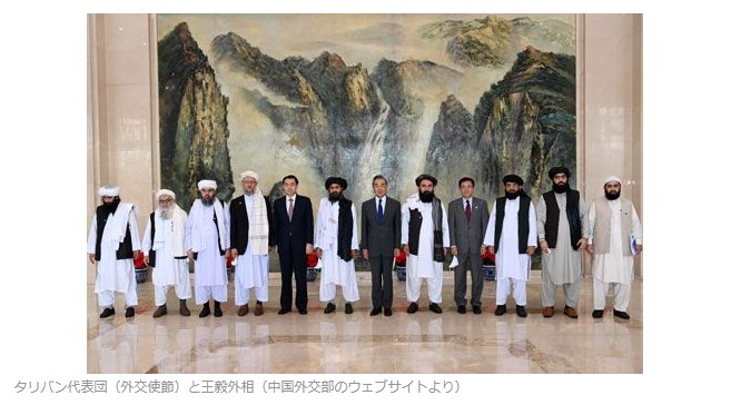 タリバン代表団(外交使節)と王毅外相(中国外交部のウェブサイトより)
