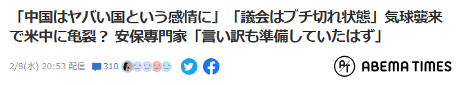 米本土に進入した中国の気球に関して