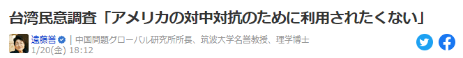 1月20日のコラム<台湾民意調査「アメリカの対中対抗のために利用されたくない」>の図表でも示したように、国民党系列と民進党系列および無党派層が拮抗していることを考えると、こういった意見も、まちがいなく「台湾の民意の一つ」であることは確かだろう。そのことを謙虚に受け止め、なぜ日本の投票率が低いのかを考えるヒントの一つにしたいと思う。