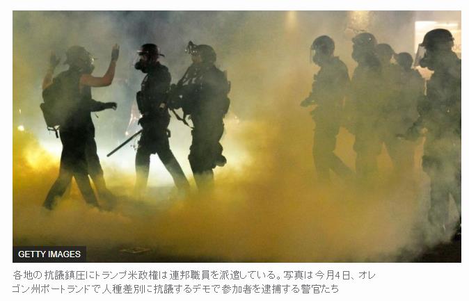 『米西海岸オレゴン州ポートランドで、所属の明示がない迷彩服姿の男たちがデモ参加者たちを説明のないままいきなり拘束し、所属不明の車両に乗せて現場を走り去ったという。同州知事は「露骨な権力の乱用」と強く非難している。
