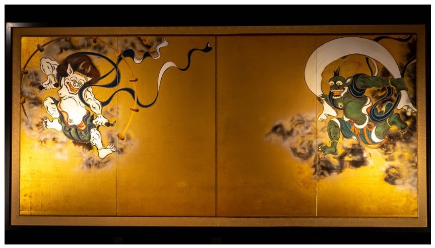 江戸時代初期に俵屋宗達(たわらや・そうたつ)が描いた「風神雷神図」は、最も有名な屏風絵と言っていいだろう。向かって右の「右隻(うせき)=風神」から「左隻(させき)=雷神」へと視線を動かして鑑賞する。