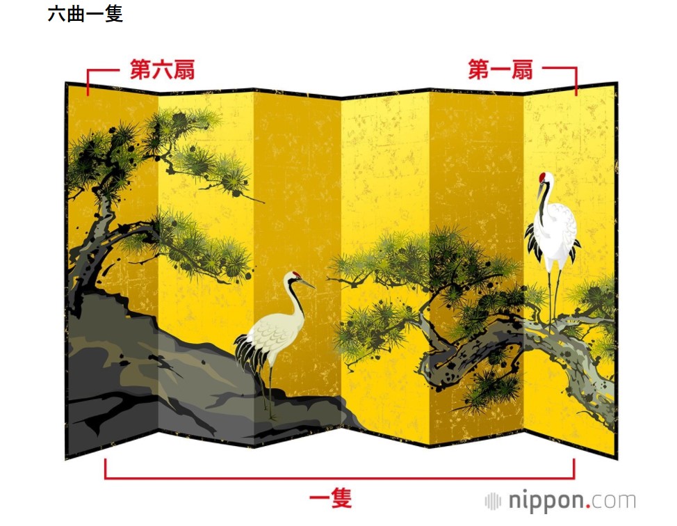 屏風を数える単位は「隻(せき)」。ちなみに「隻」は単数を示す助詞で、「隻眼の武将・伊達政宗」のように、「本来は対であったものの片側」を指す言葉。
