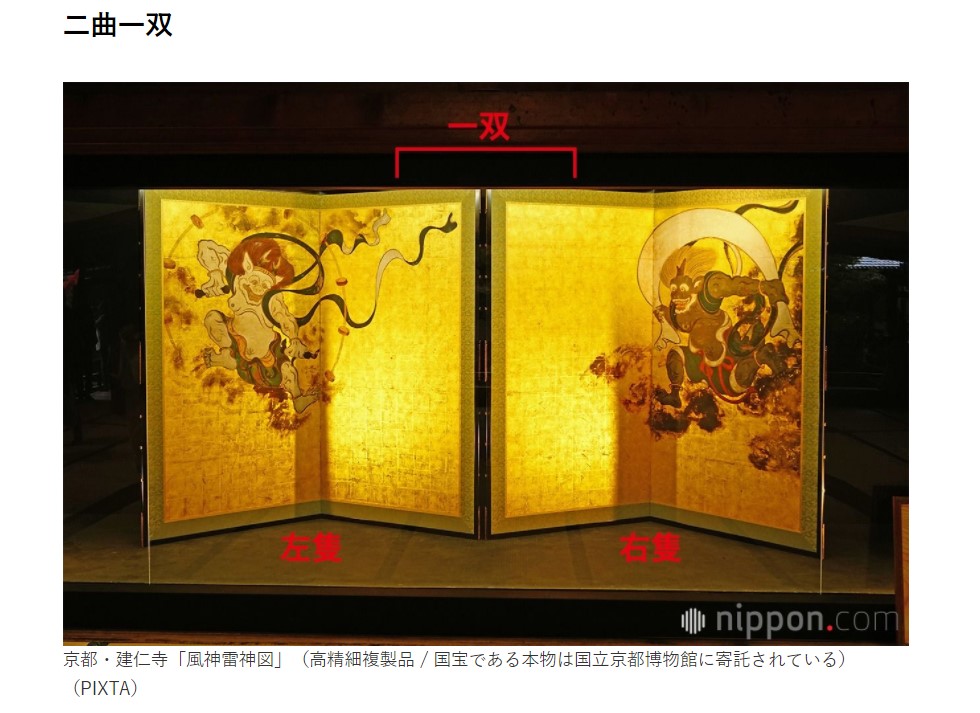 「二隻」の屏風で一組になっているものを「一双(いっそう)」という。