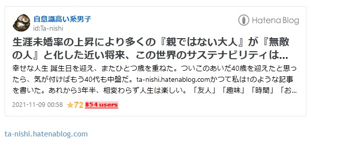 『リンク先の文章は、子どもを持たない大人が増えることで自分の代までしか考えない人も増え、世界の持続可能性が危機にさらされるのではないか、といった趣旨だ。「私の死んだ後のことなんかどうでもいい」と皆が考えるようになり、後々の世界に思いを馳せなくなったら、世界の持続可能性は怪しくなるだろう。欧米を中心に若い人たちが世界の持続可能性について大きな声をあげ、その槍玉に挙げられているのがそのような大人たちであることを思い出したりした。