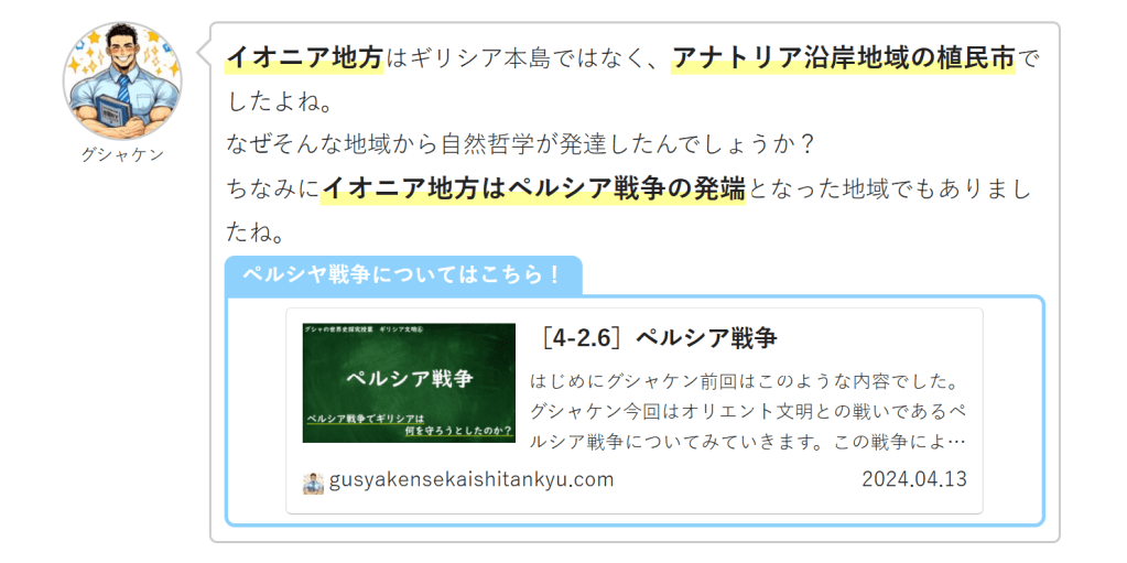 グシャケンこれはギリシア人の生活とミレトスの地政学的特徴がわかると理解できますよ。