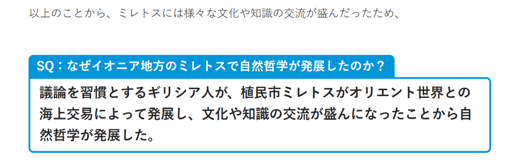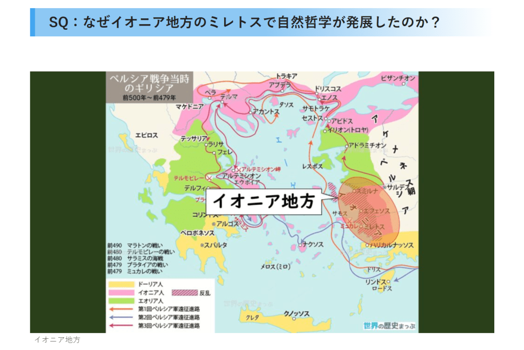 イオニア自然哲学SQ:なぜイオニア地方のミレトスで自然哲学が発展したのか?