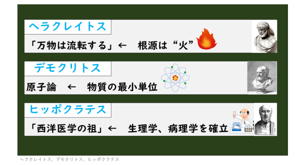ヘラクレイトス、デモクリトス、ヒッポクラテス