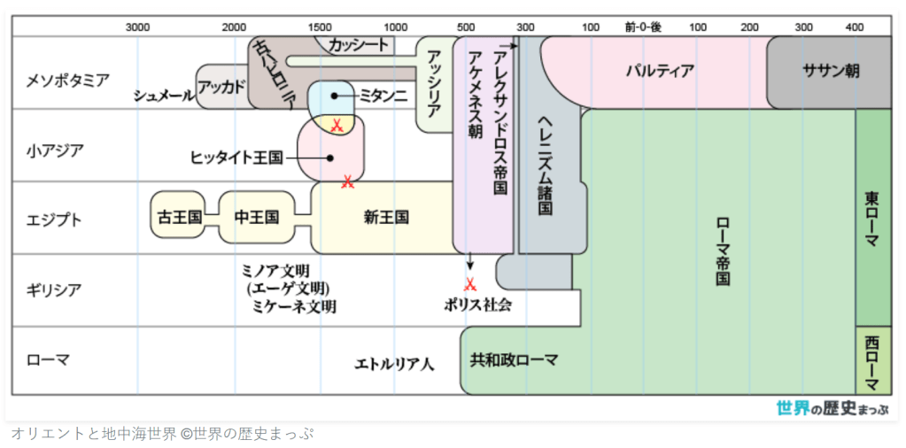 そうです、アケメネス朝ペルシア(ペルシア帝国)などのオリエント文明でしたね。