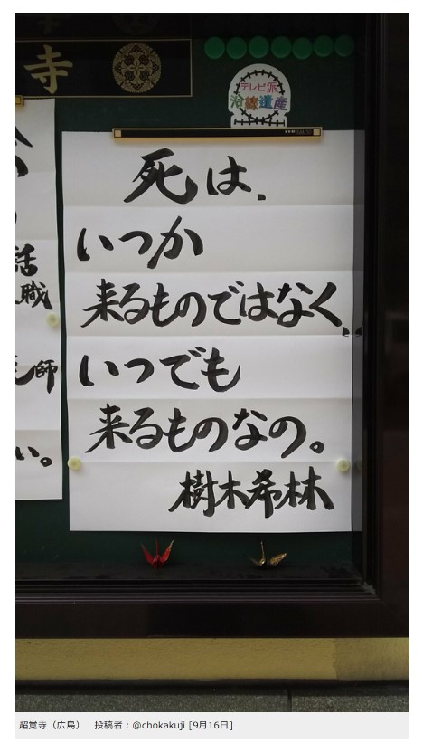 【お寺の掲示板の深い言葉 1】「おまえも死ぬぞ」超覚寺(広島) 投稿者:@chokakuji [9月16日]