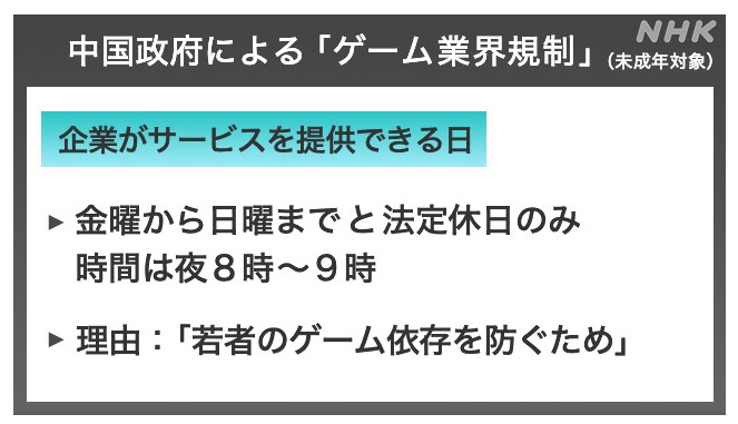 阿古教授は「中国当局は海外から入ってくる思想をすごく警戒するので、そうした中で日本に対する見方も厳しくなる可能性がある」として、今後はゲーム産業のみならず、文化交流全体にも影響が出かねないと指摘しています。 』