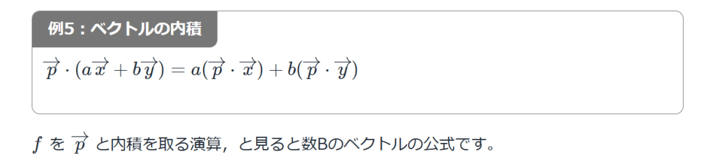 ∑ g ∈ G a g g {\displaystyle x=\sum {g\in G}a{g}\,g} と R-値写像 f: G → R の対に対して、内積