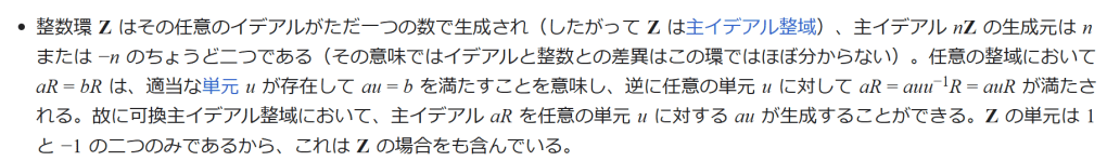 ゆえに、整数環 Z が UFD となるというのは、自然数についての(本来の)算術の基本定理からの簡単な帰結である。