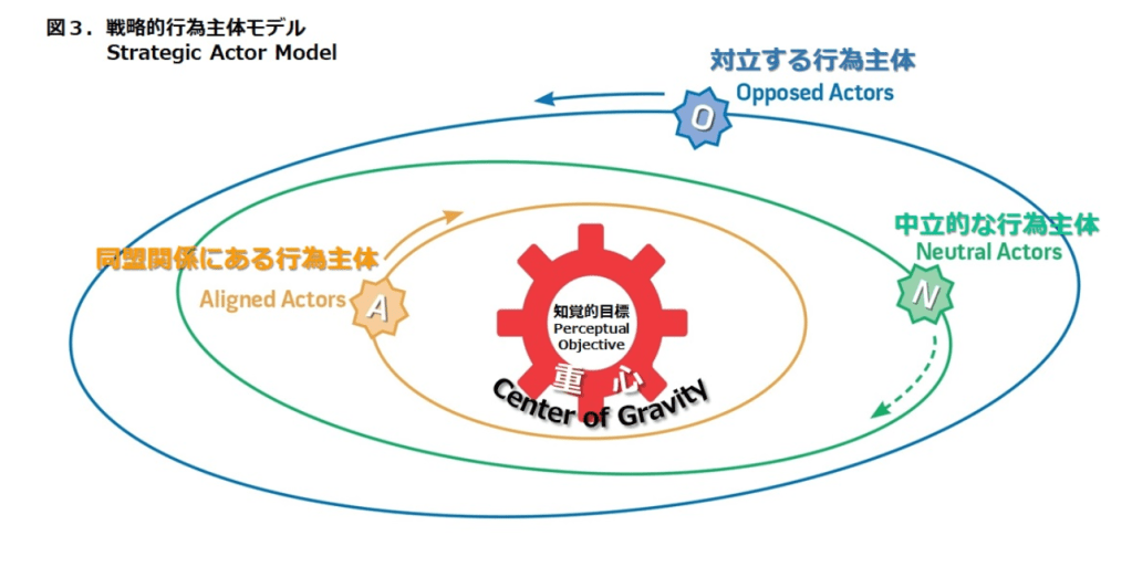 むしろ、高度に競合する戦略的認知地形(strategic cognitive terrain)をめぐる競争において、情報スペクトラム全体(information spectrum)を統合用兵インテグレータ(joint warfighting integrator)として位置づけることを意図しているのである。