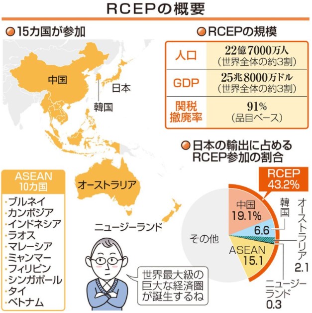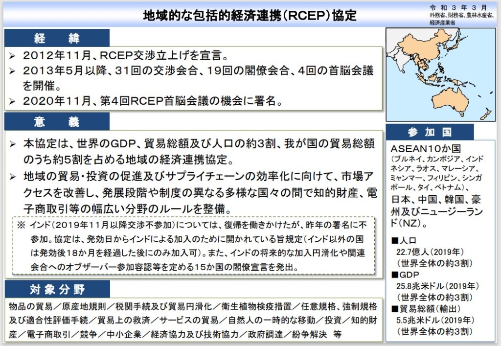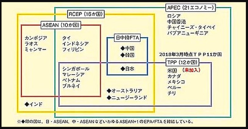 そのため最近ではアジアでも、環太平洋パートナーシップ協定(TPP)や地域的な包括的経済連携(RCEP)といった多国間地域協定が締結されている。米国・EU間のTTIPの交渉の際には、大衆の猛烈な反対もあった。一方、日EU経済連携協定は、安倍晋三前首相とEUのユンケル委員長の間で交渉が進められ、19年に発効に至った。