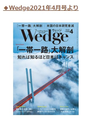 Wedge4月号では、以下の特集を組んでいます。全国の書店や駅売店、アマゾンなどでお買い求めいただけます。 http://wedge.ismedia.jp/ud/wedge/release/20210320