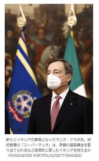 新たにイタリアの首相となったマリオ・ドラギ氏。技術官僚の「スーパーマリオ」は、多額の復興資金を割り当てられるなど経済的に苦しむイタリアを救えるか (MONDADORI PORTFOLIO/GETTYIMAGES) 21年初めの現在、EUは2220億(約28兆円)ものコロナ復興資金をイタリアに割り当てている。ところがイタリアは、またしても個人間および政党間の内紛に陥った。そしてまたしても、この国を救えるのはEUで経験を積んだテクノクラート(専門家、技術官僚)だけだと考えている。「スーパーマリオ」の異名を持つ元欧州中央銀行総裁、マリオ・ドラギである(編集部注・欧州経済危機に苦しんでいた11年にも同じくテクノクラートのマリオ・モンティが首相に擁立された)。