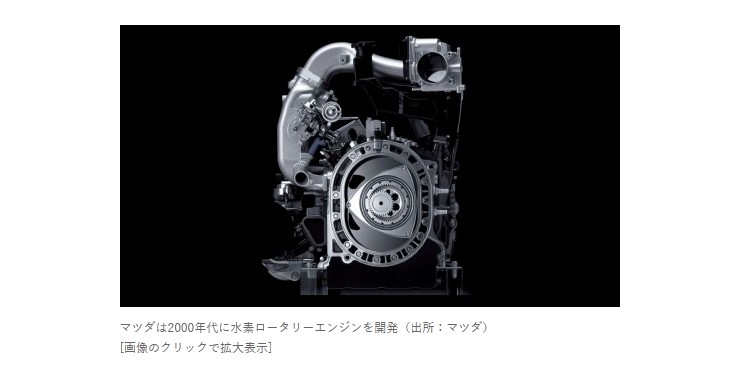 日本では、マツダが水素ロータリーエンジンを開発していた。前々回の「エンジン完全燃焼」コラムで少し触れたが、ロータリーエンジンは水素燃料と相性がよく、バックファイアが発生しないからだ。水素燃料を噴射する部屋と燃焼する部屋が異なるため、水素を噴射する部屋の壁温が低く、着火しない。