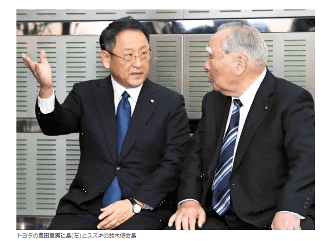 スズキは同8月末、トヨタとの相互出資による提携を発表した。それに先だつこの日、修会長は静岡県内の本社や工場に豊田社長を招いた。そして会食の前に「汗を流しませんか」と誘ったのだ。サウナに入って提携への感謝を伝えた後、かみしめるように言葉をつなげた。「息子の俊宏(社長)を頼みます」