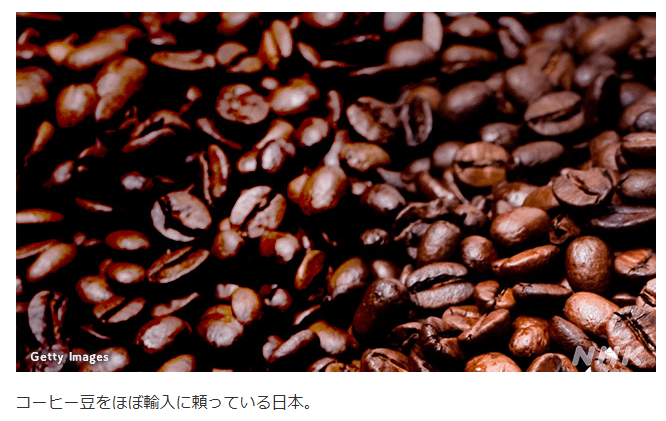 コーヒー豆をほぼ輸入に頼っている日本。