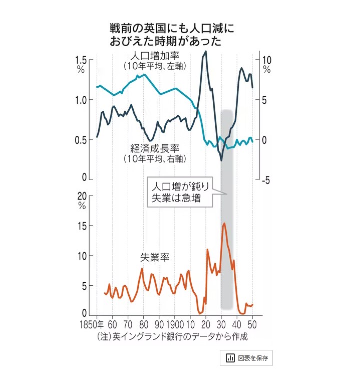 だが1930年代の大不況を経て、ケインズの人口観は一変する。37年の講演では、人口減が企業の投資意欲を縮こまらせると喝破した。